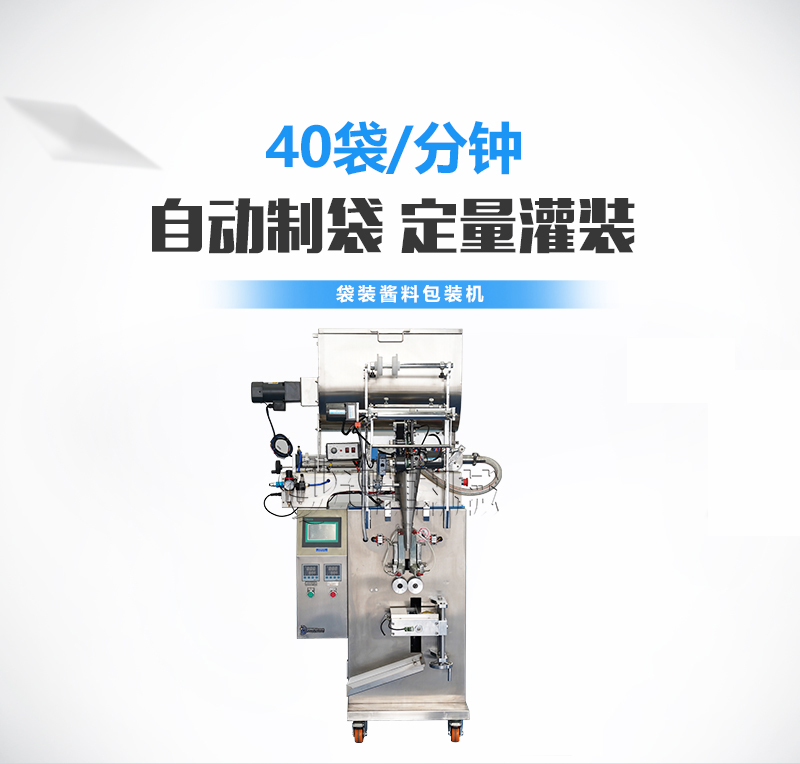 DXD-60J醬料包裝機適用于包裝芝麻醬、食用油、洗發液、調味汁、油脂、脂膏、化妝品等產品,將其灌入袋內,能適合各種粘度的產品。該機具有快速、精確、經濟和實用的優點。雙系統設置,可實現醬與油的分流包裝。