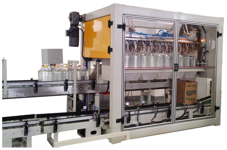 2.5升食用油開裝封箱包裝流水線是由開箱機、動力輥筒輸送機、自動折蓋封箱機與2臺自動打包機組合而成。采用德新技術,具有當今際先水平,突破傳統機械結構,采用機、電、氣、光、磁為一體的高新技術,適用于將瓶子自動裝進紙(塑料)箱內,并且產品規格和品種更新只需改變機械手,采用優質進口件,結構緊湊、生產效率極高、機械運行穩定、精確、操作簡單、維護方便、故障率低、自動化程度高、能自動調節速度,適用于啤酒、飲料、食品、醫藥、化工自動裝箱工序。